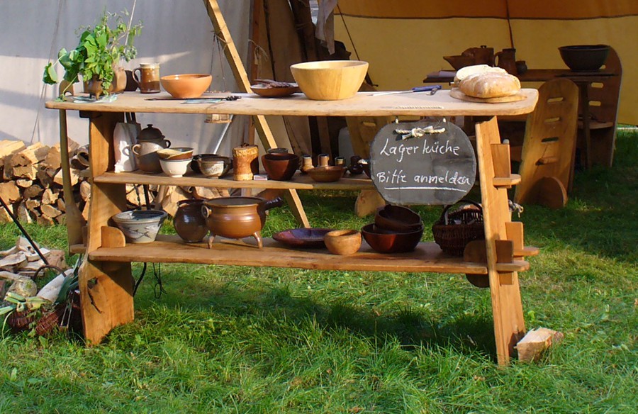 Für die Ausstattung Ihres mittelalterlichen Lagers bieten wir Steckbänke und Tische, sowie Betten, Regale, Truhen und Zeltgestänge an. Alles ist zerlegbar, damit man es gut transportieren kann.